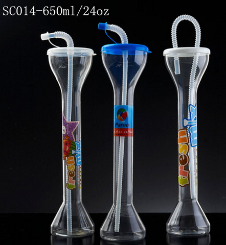 20oz/600ml Eco-Friendly Custom Logo Reutilizable Yard Cups Slush Plastic Colored PET Plastic Cup para bebidas
